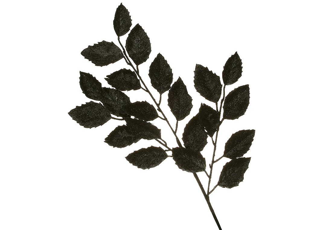 Декоративна гілка листя 72см , колір - чорний з гліттером