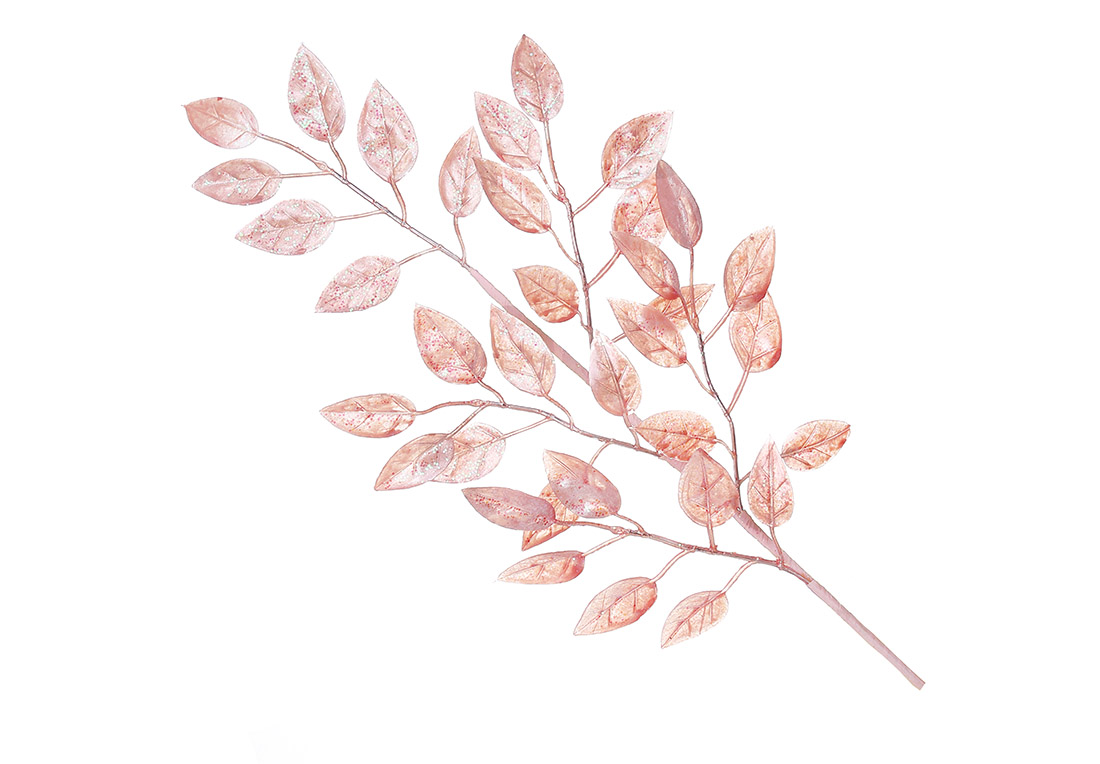 Декоративна гілка Листя 54см, колір - рожевий гліттер