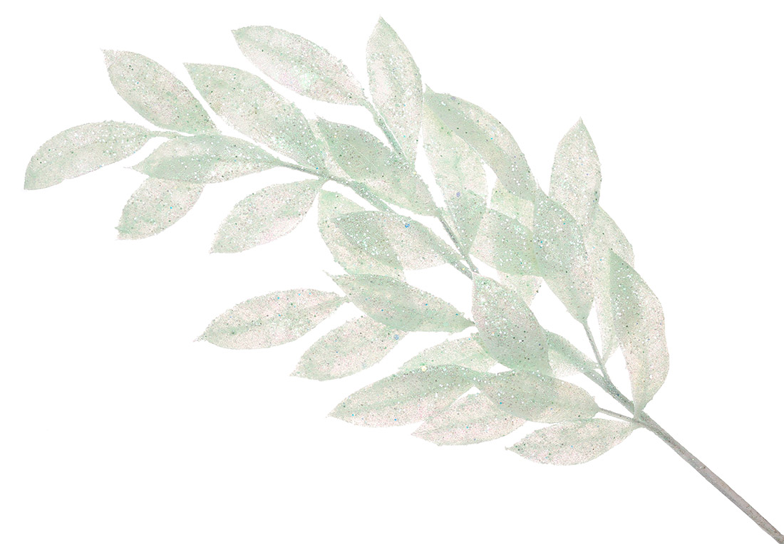 Декоративна гілка Листя 73см, колір - м'ятний з гліттером