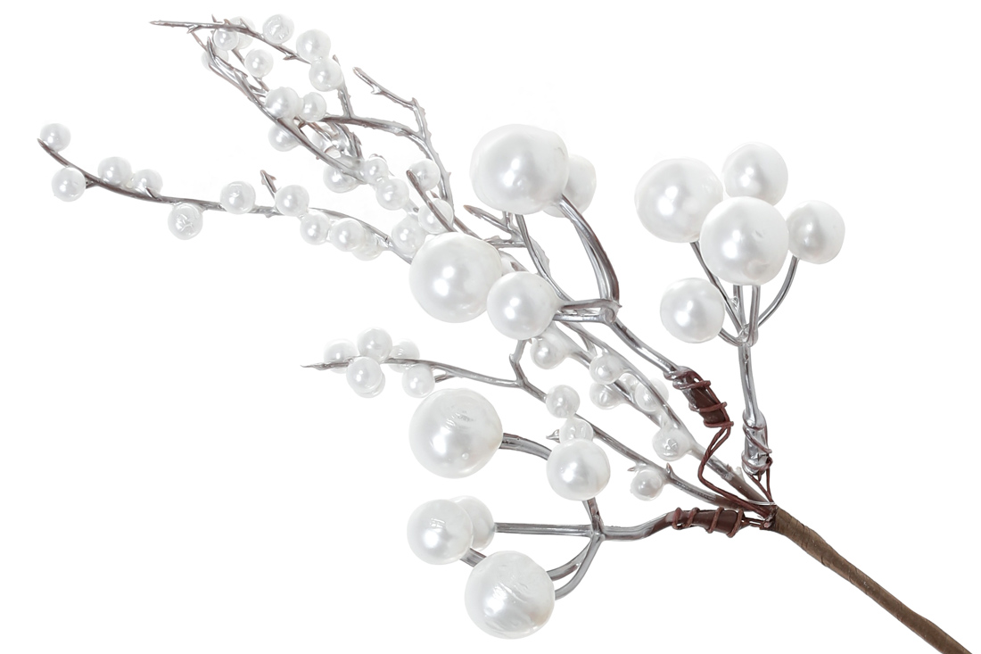 Декоративна гілка з білими перламутровими ягодами, 22см