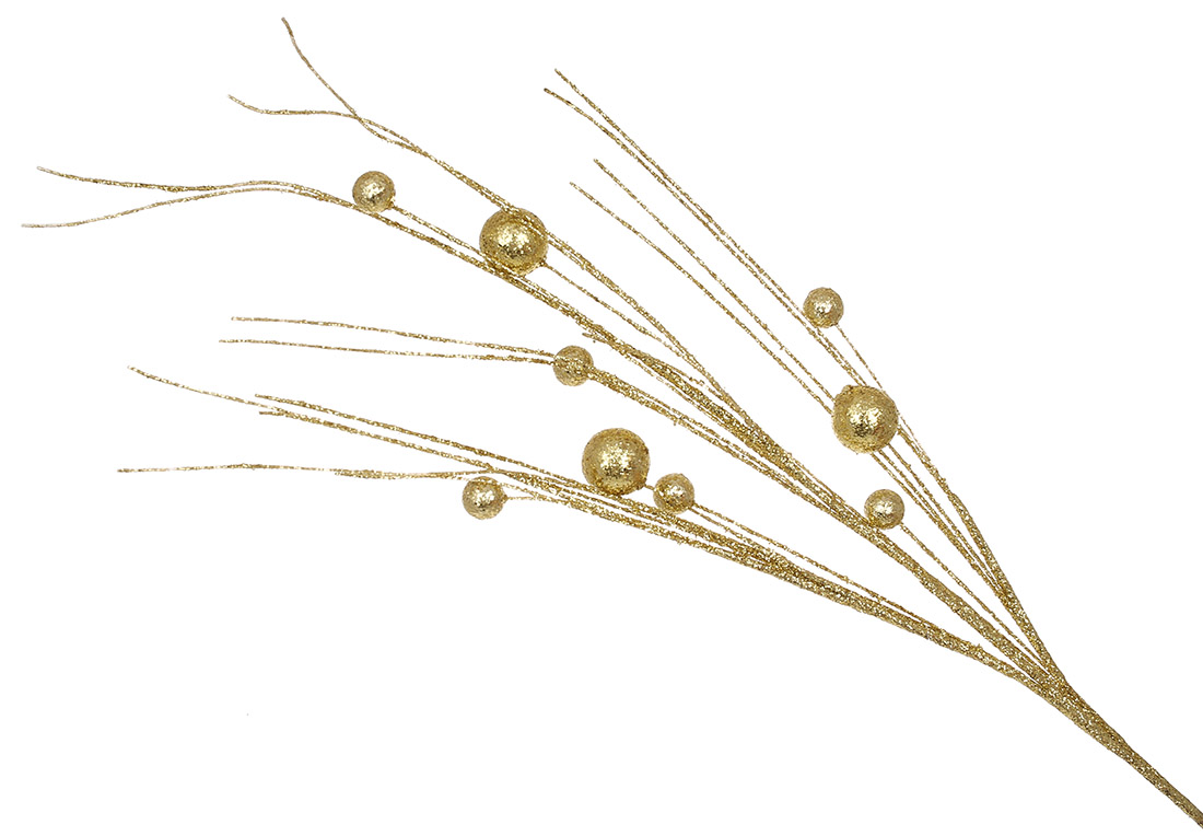 Декоративна гілка з ягодами в гліттері 78см, колір - золото