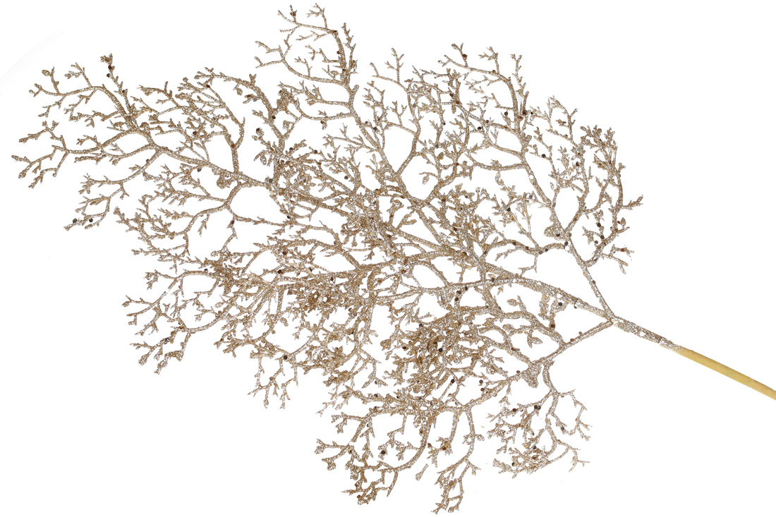 Декоративна гілка в гліттері Корал 74см, колір - шампань