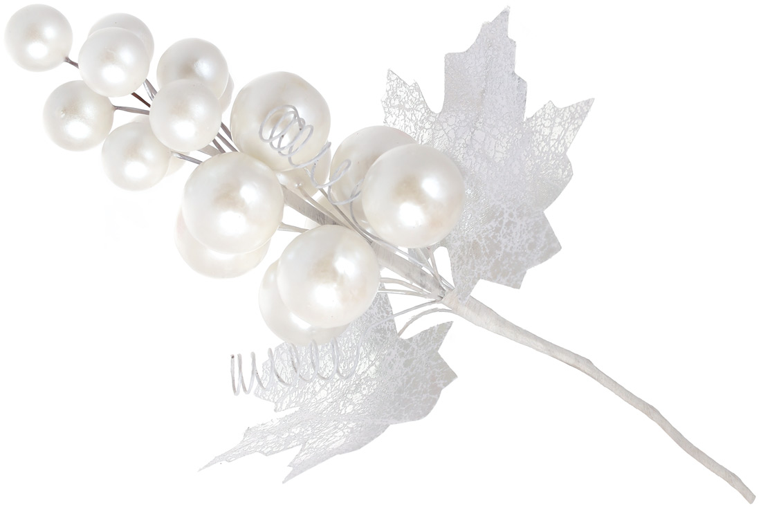Декоративна гілка Виноград, 19см, колір - білий перламутр