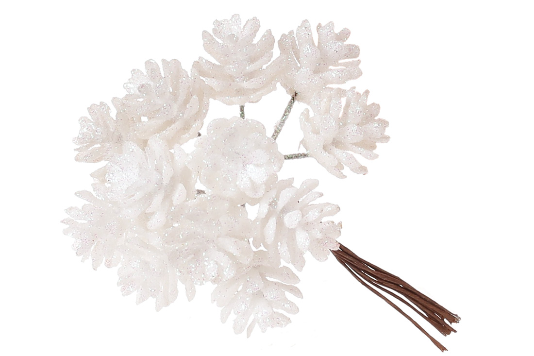 Декоративні міні-шишки 12шт в пучку, 12см, колір - білий