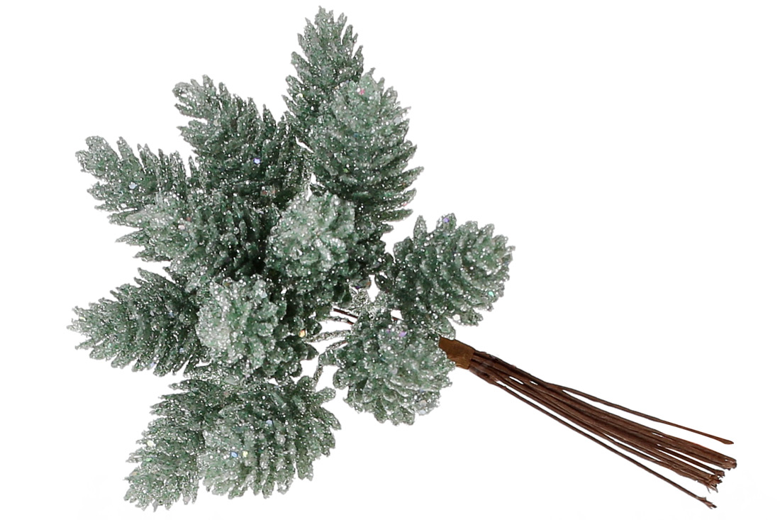 Декоративні міні-шишки 12шт у пучку, 12см, колір - евкаліпт