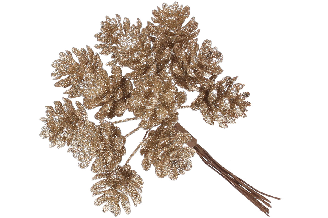 Декоративні міні-шишки 12шт в пучку, 12см, колір - шампань