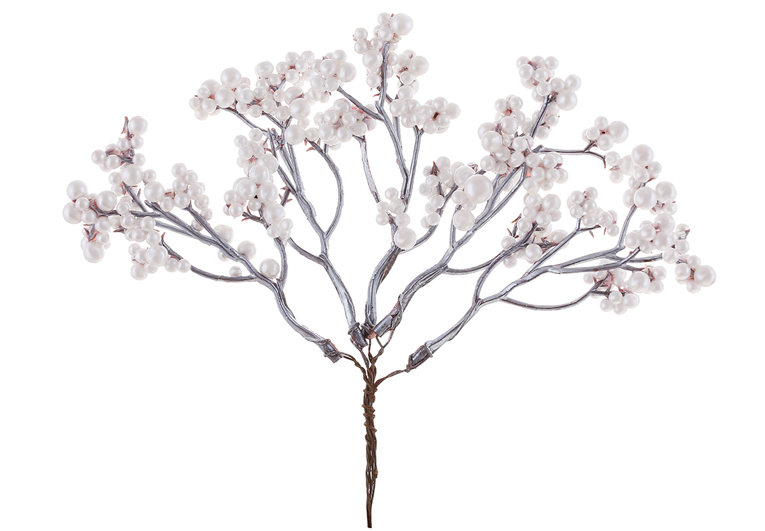 Декоративні перламутрові ягоди в пучку, 18см, колір перлинно-білий