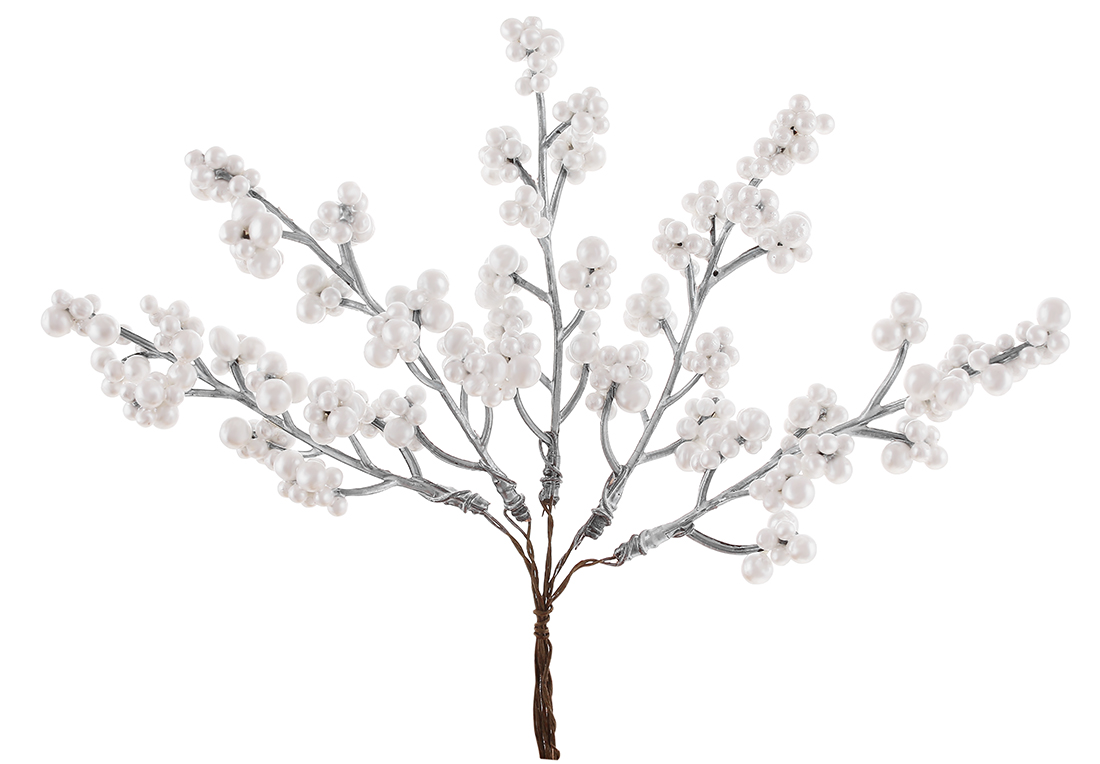 Декоративні перламутрові ягоди в пучку, 19см, колір перлинно-білий