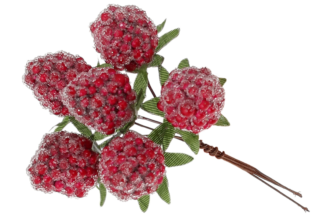 Декоративний букетик малини 6шт, 11см, колір - червоний лід