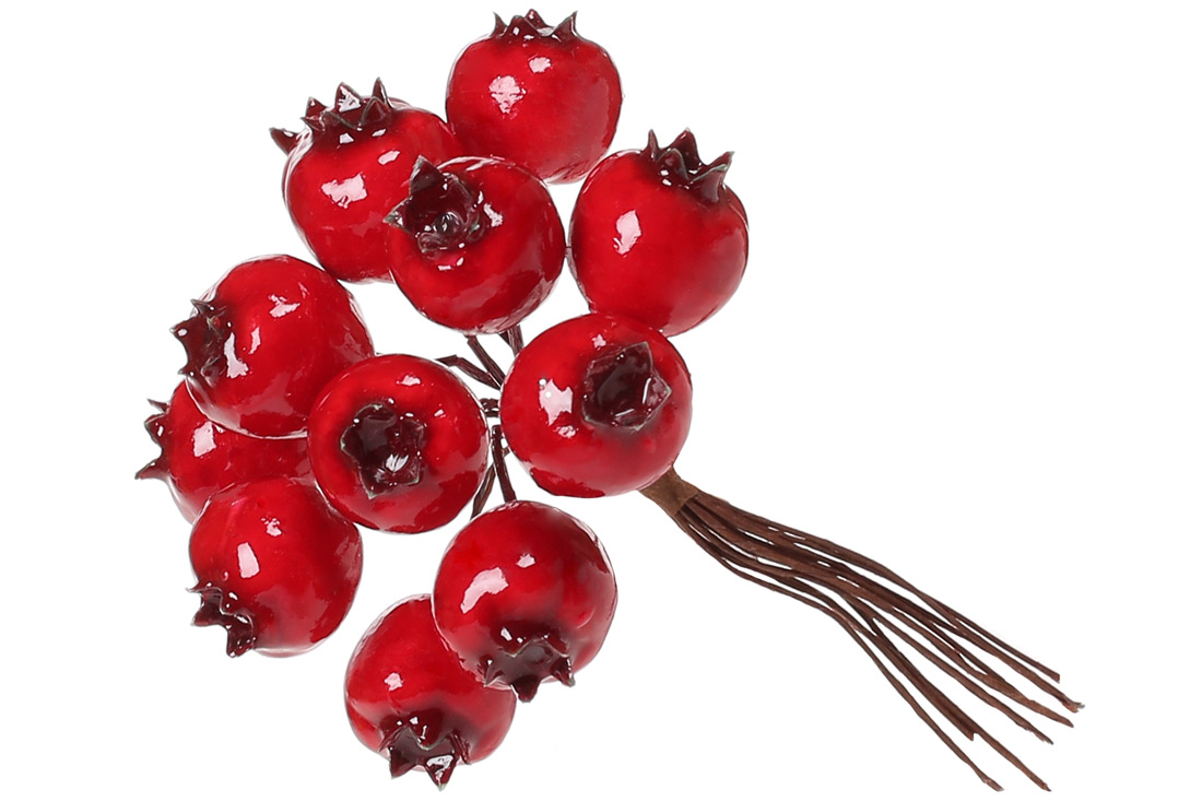 Декоративний букетик ягід 12шт, 11см, колір - червоний глянець
