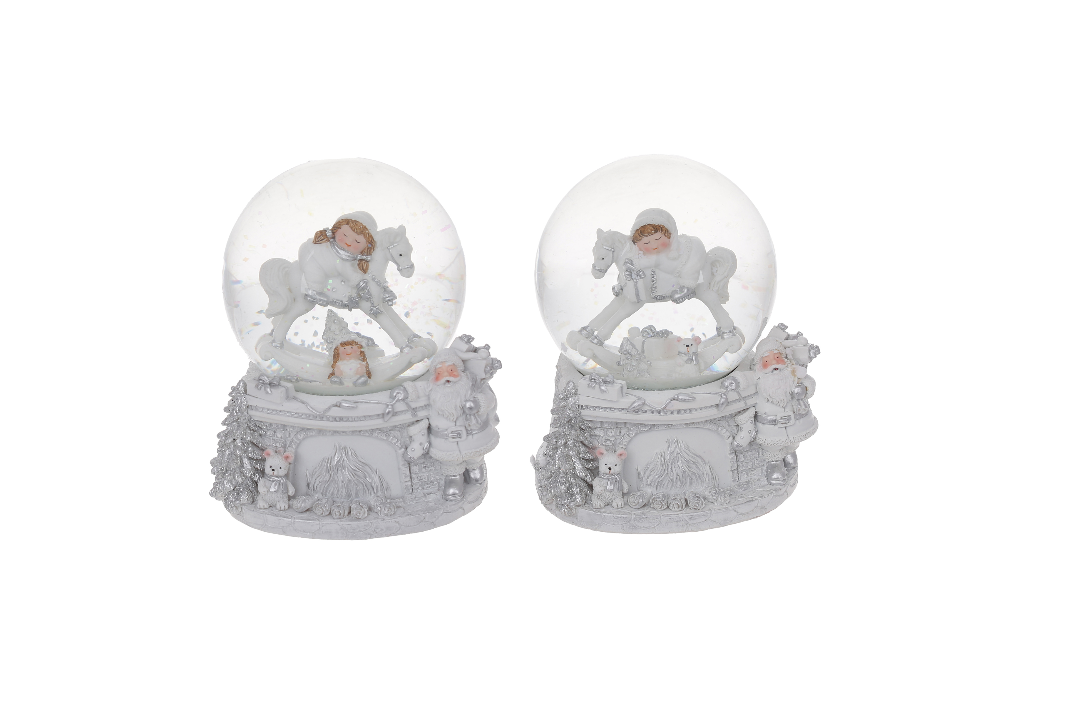 Декоративна водяна куля Солодкий сон 13.3см з музикою, 2 дизайни - хлопчик і дівчинка, колір - білий зі сріблом