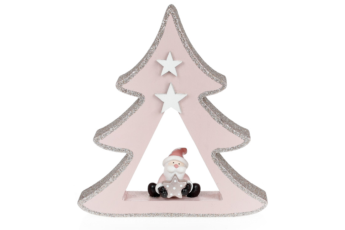 Дерев'яний декор Ялинка з фігуркою Санти, 16см