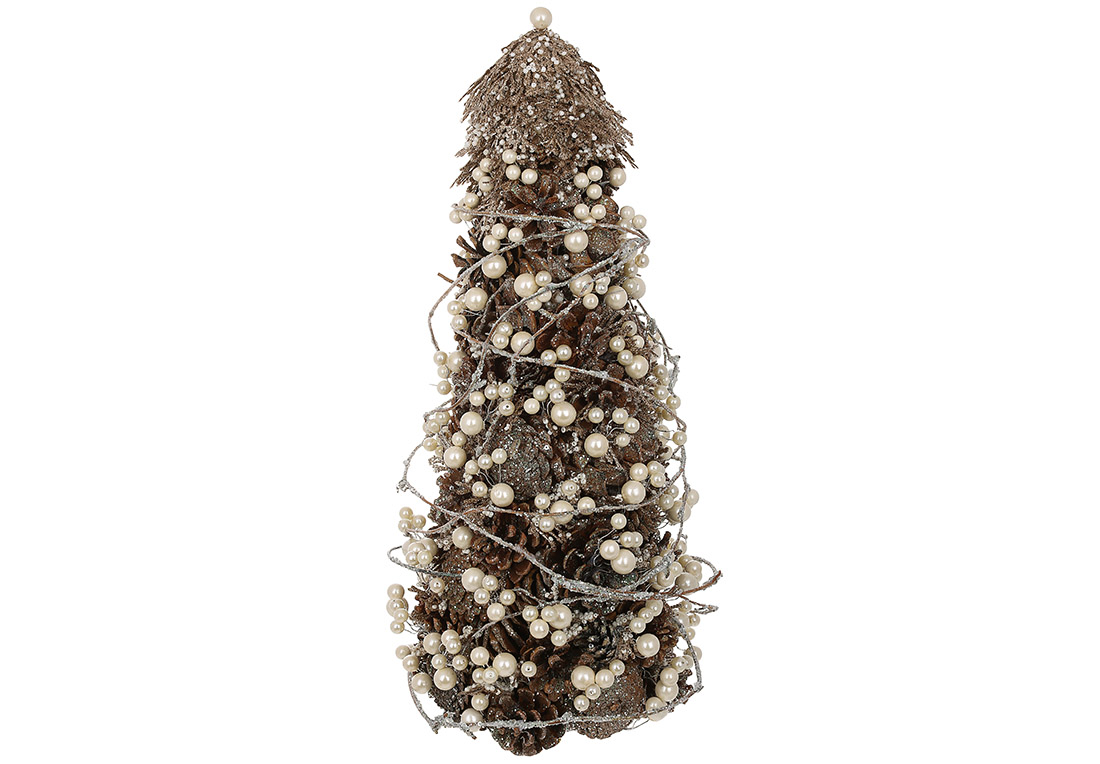 Ялинка новорічна 48см з декором із шишок та ягід, колір - золотистий