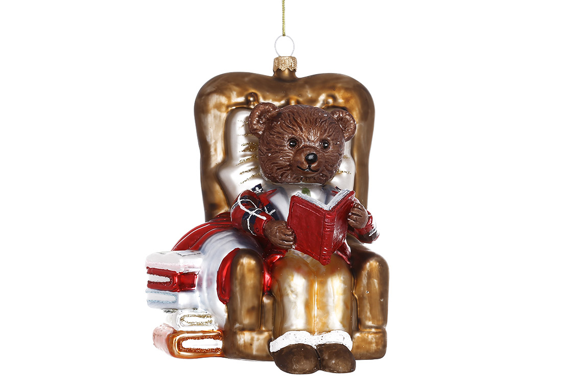 Ялинкова фігурна прикраса зі скла Ведмедик у кріслі, 12.5см