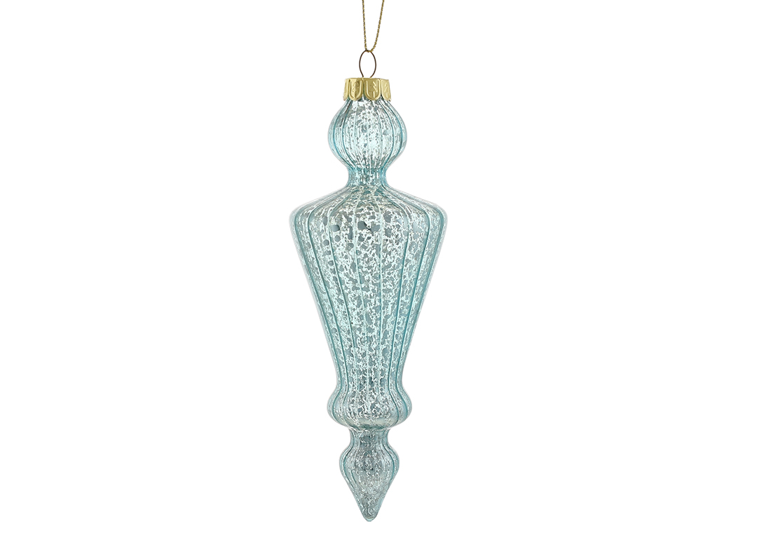 Ялинкова фігурна прикраса зі скло 6*17см, колір - бірюзовий.