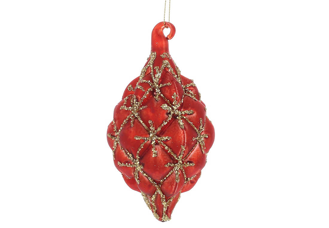 Ялинкова прикраса 6.5*13см, колір - червоний матовий із золотим гліттером.