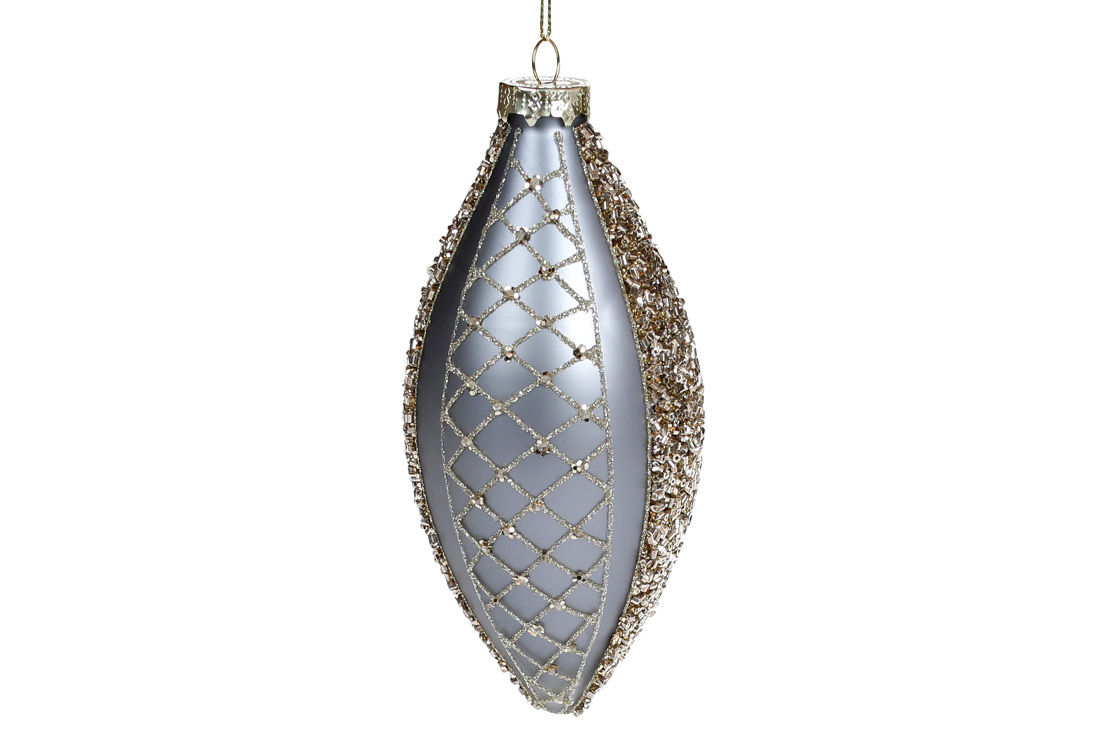 Ялинкова прикраса з декором з гліттера та бісеру, 17см, колір - сіра платина
