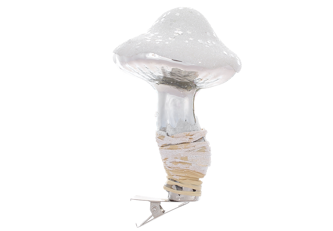 Ялинкова прикраса Гриб на кліпсі, 11см, колір - білий зі сріблом
