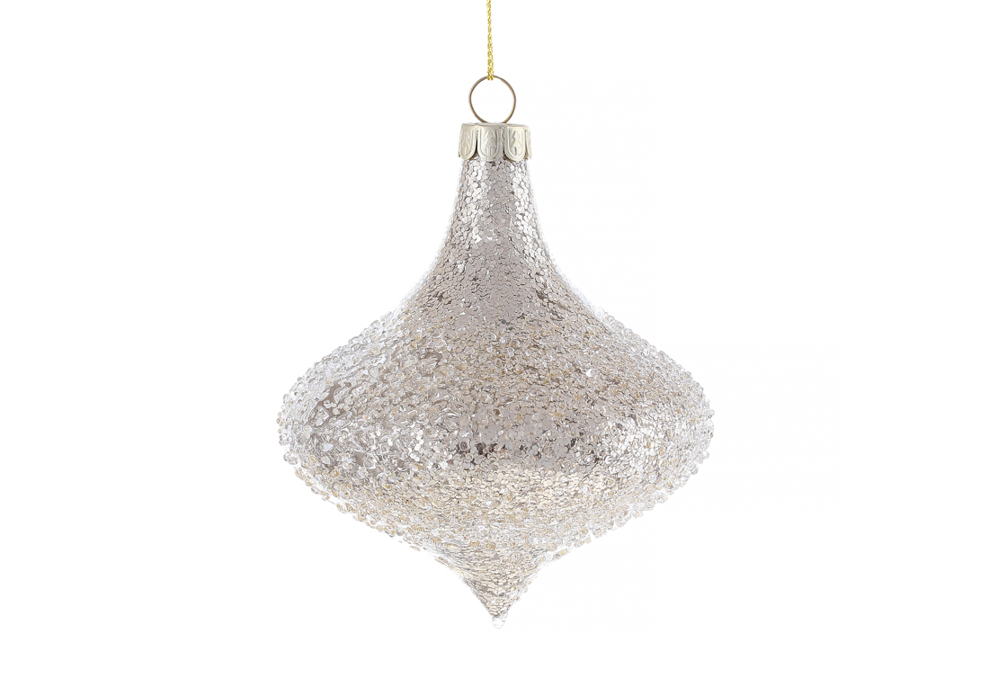 Ялинкова прикраса цибулина 10*12см з крижаним покриттям, колір - шампань