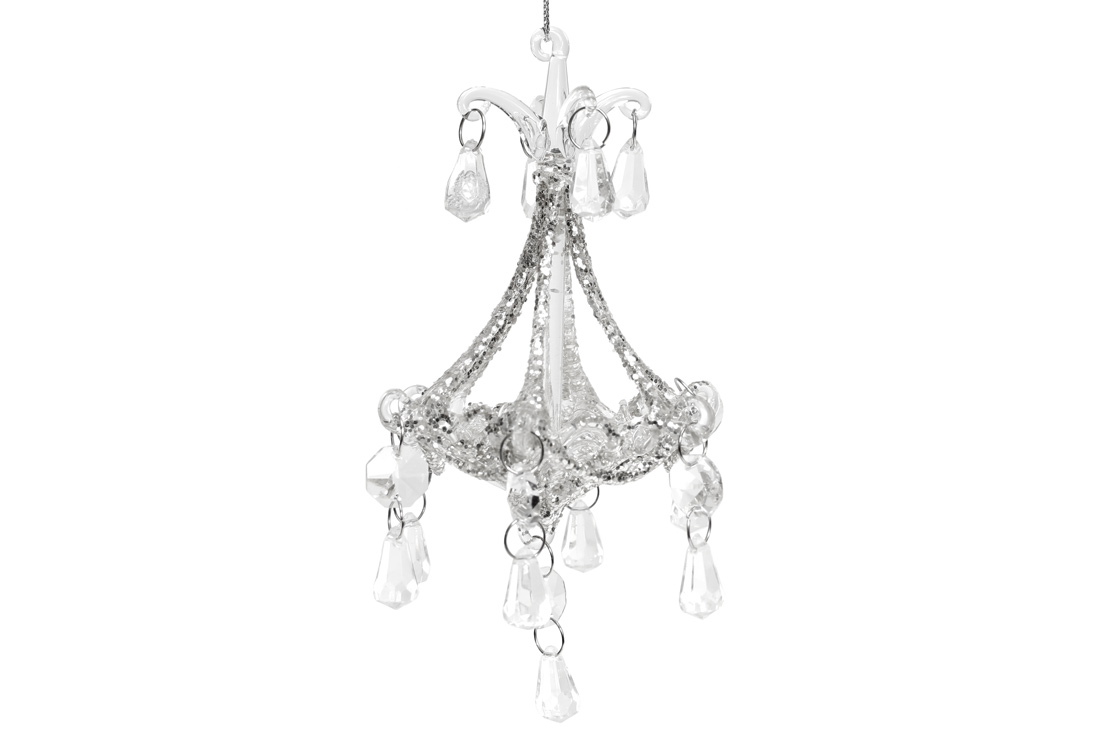 Ялинкова прикраса Люстра із сріблястим гліттером, 14см