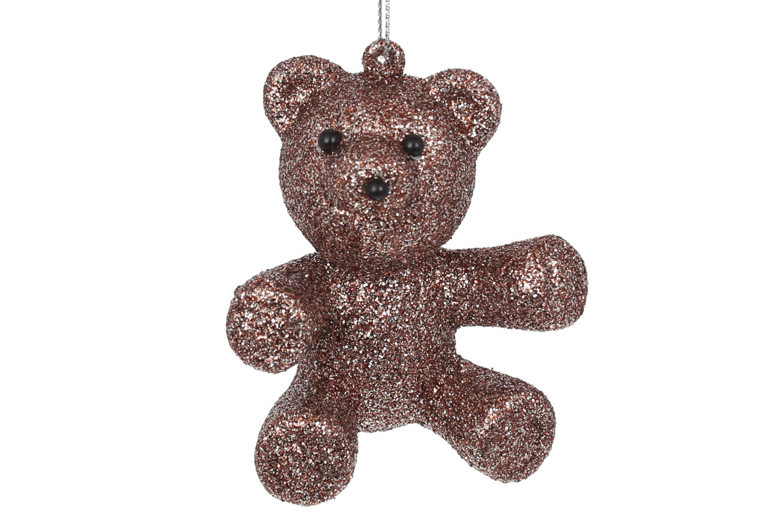 Ялинкова прикраса Ведмедик 7см, колір - гліттер мокко