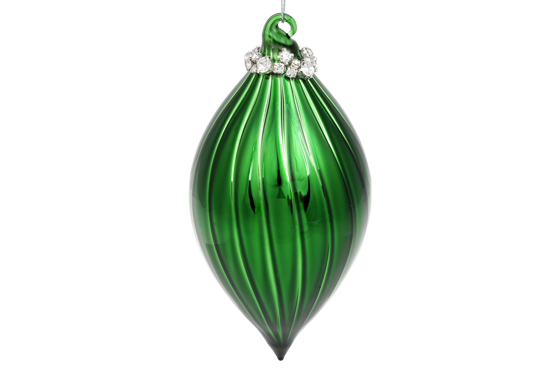 Ялинкова прикраса з декором з каміння, 16см, колір - смарагдовий зелений