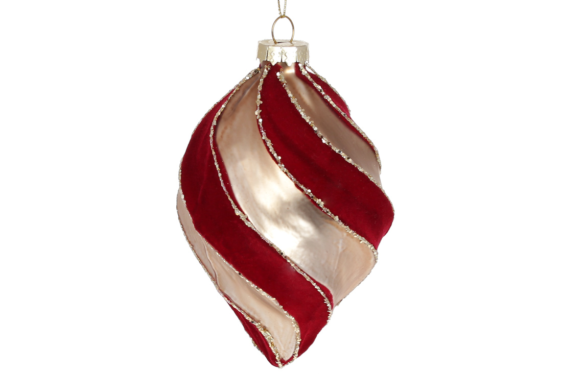Ялинкова прикраса з матовим та оксамитовим покриттям 12см, колір - бордо з золотом