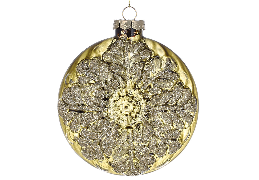 Ялинкова прикраса з орнаментом 10*4*11см, колір - хвойний зелений із золотим гліттером