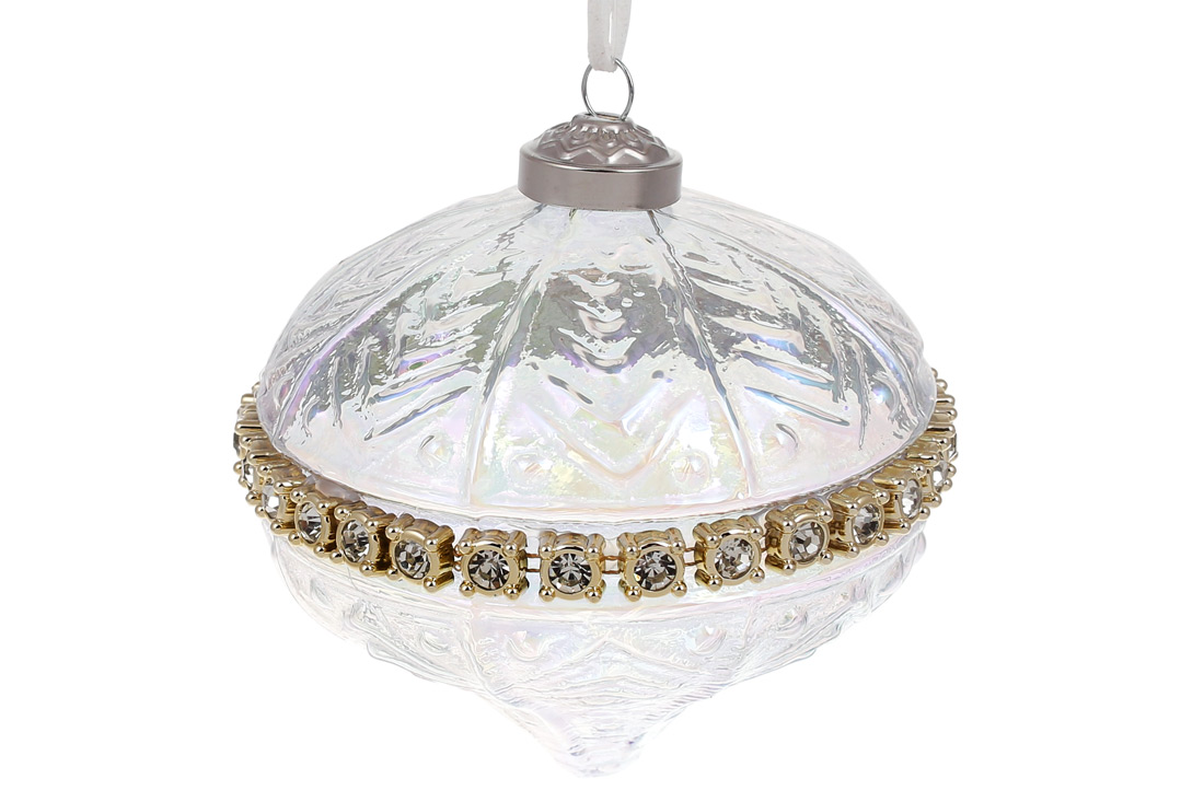 Ялинкова прикраса з рельєфним візерунком та декором з каміння, 10см, колір - діамантовий прозорий