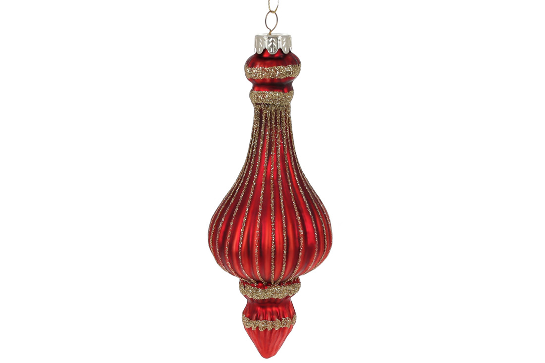 Ялинкова прикраса із золотим гліттером 16.3см, колір - матовий червоний