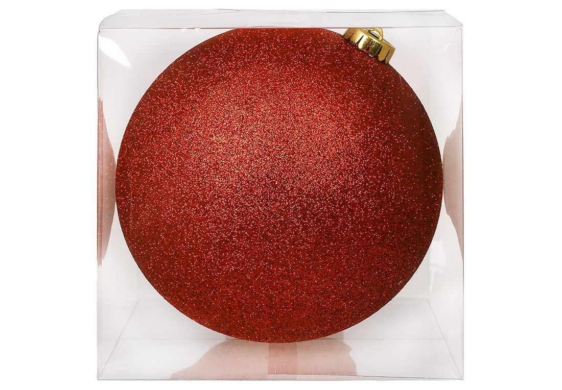 Ялинкова куля 12см, колір - червоний гліттер