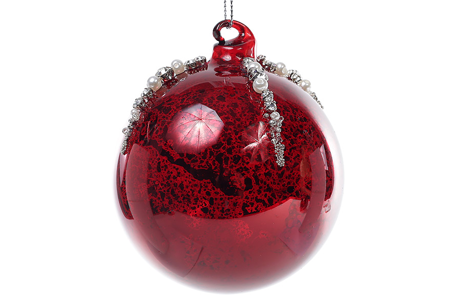 Ялинкова куля 8см червоний антик з декором зі страз та намистин