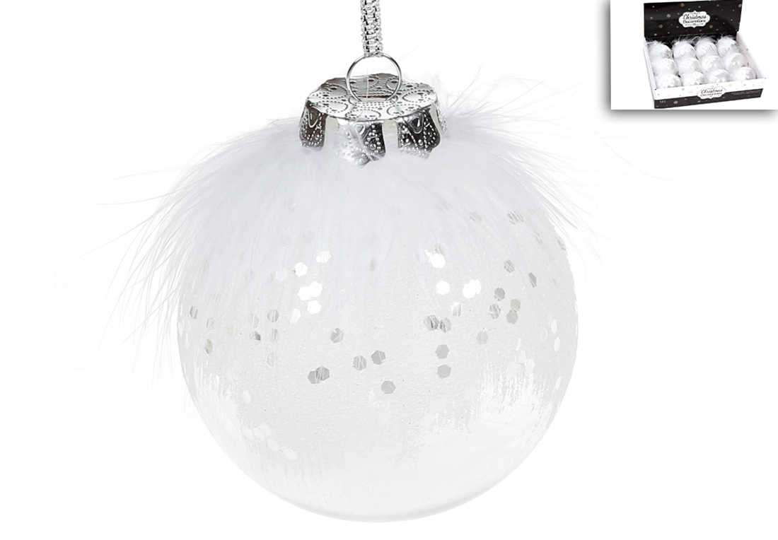 Ялинкова куля 8см з декором із пуху, колір - білий