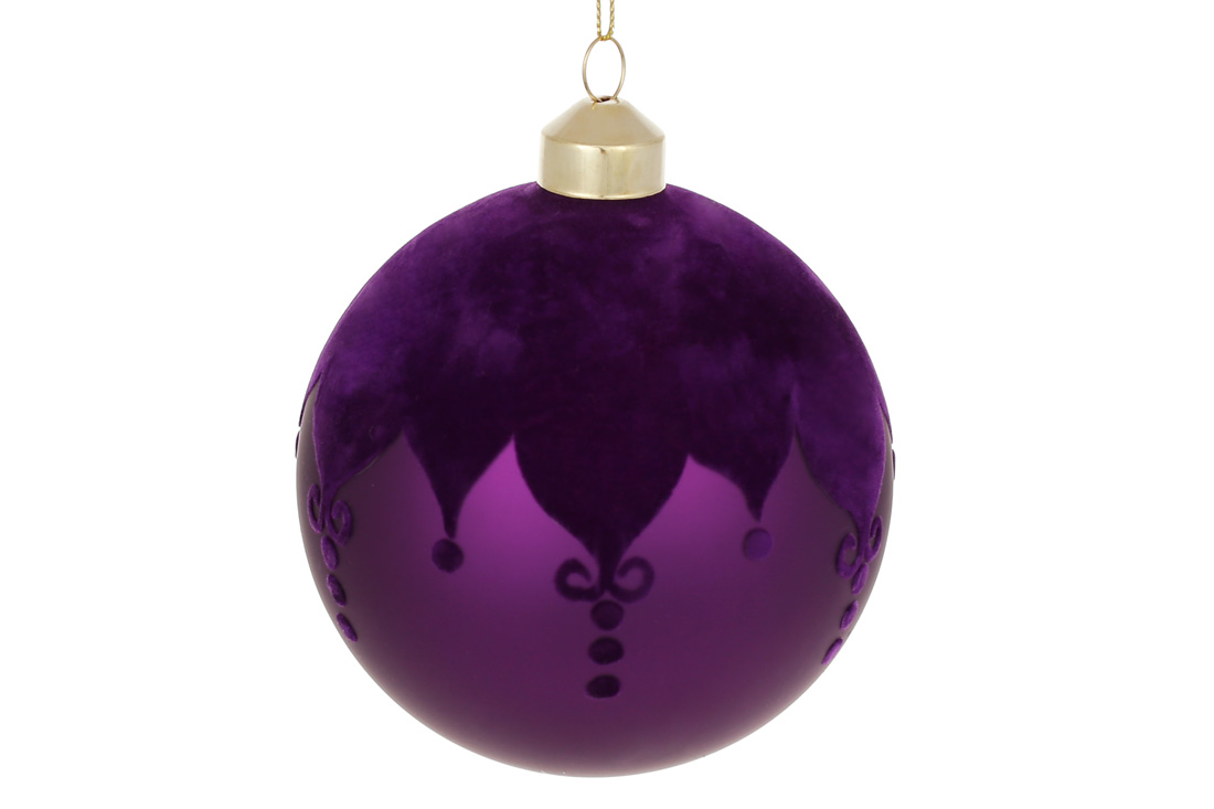 Ялинкова куля Королівський фіолет 10см, колір - матовий фіолетовий з оксамитом, в дисплей коробці