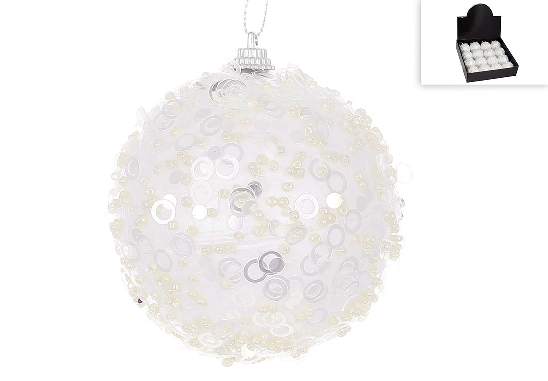 Ялинкова куля з декором із гліттера 8см, колір - білий