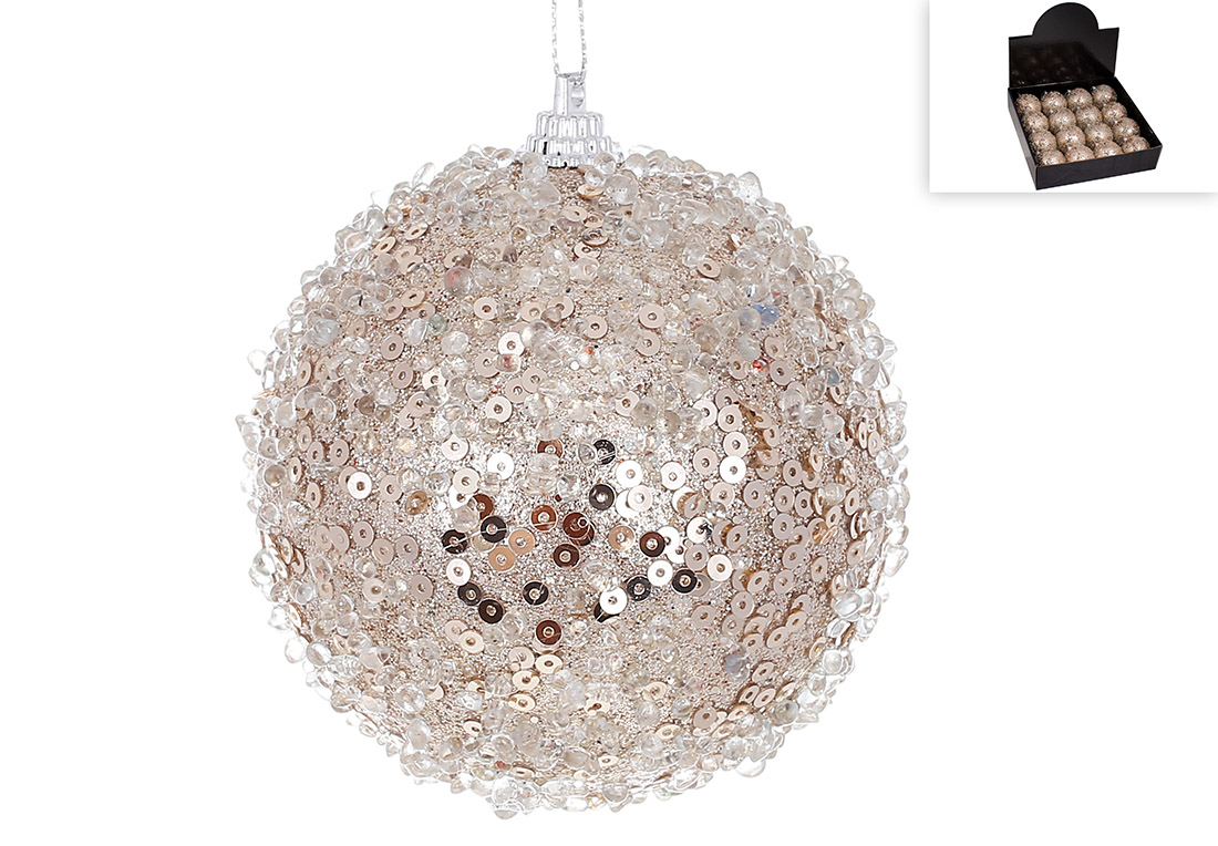 Ялинкова куля з декором з паєток 8см, колір - шампань