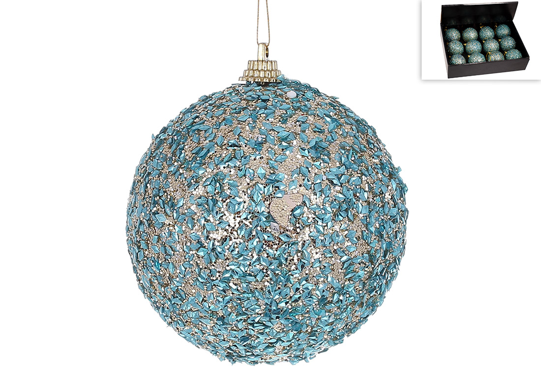 Ялинкова куля з гліттером 8см, колір - зелений з шампанню