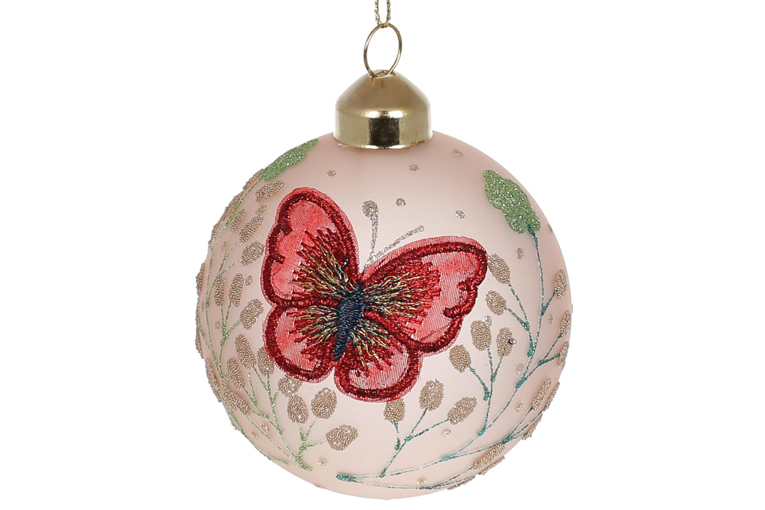 Ялинкова куля з мереживним декором "Метелик" 8см, колір - пудровий