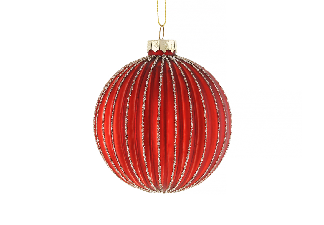 Ялинкова куля з матовим покриттям і глітерним декором 8см, колір - червоний із золотом
