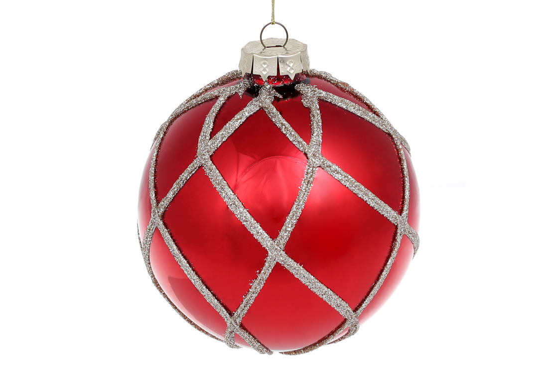 Ялинкова куля з орнаментом із гліттера, 10см, колір - червоний