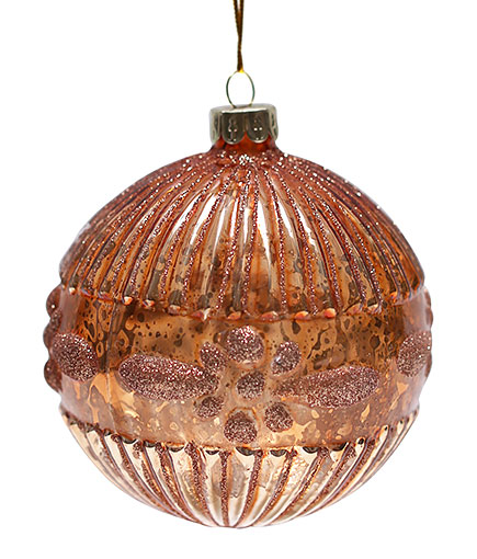 Ялинкова куля з орнаментом, мідь-антик, 10см