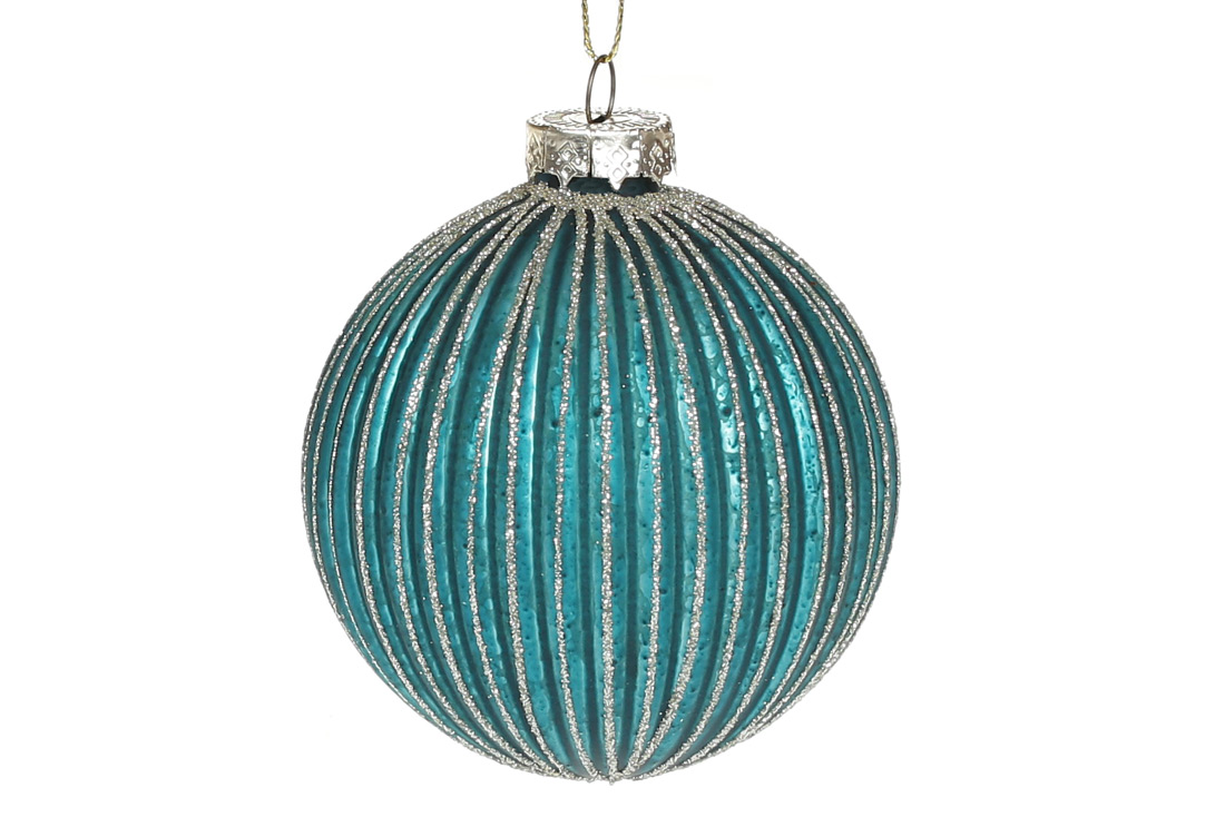 Ялинкова куля з рельєфом та декором з гліттера, 8см, колір - темна бірюза