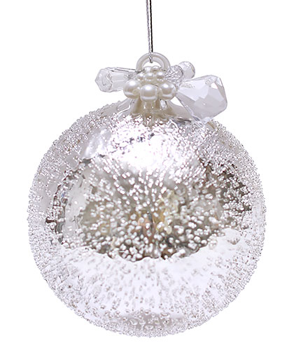 Ялинкова куля - срібло з покриттям "лід", з декором з бусин та перлів, 10см