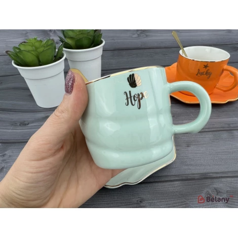 Керамічна чашка з блюдцем "Color Shell" ментол