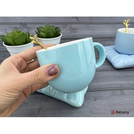 Керамічна чашка з блюдцем "Cup on pillow" блакитна