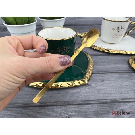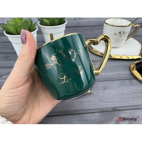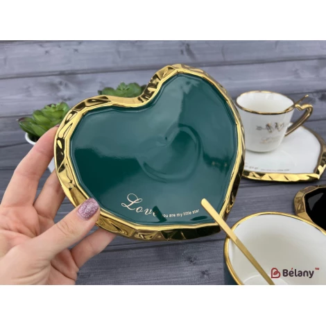 Керамічна чашка з блюдцем "Deep Gold heart" смарагд