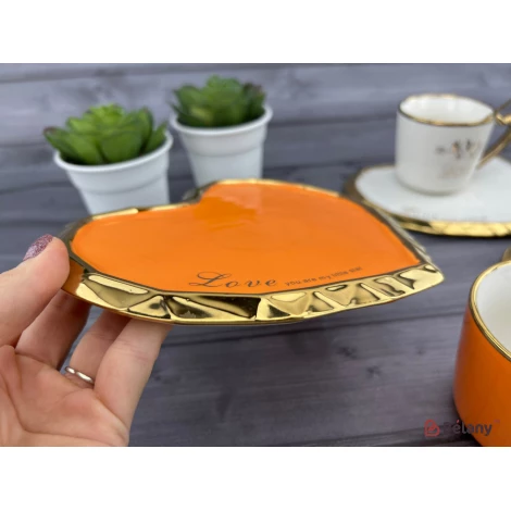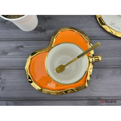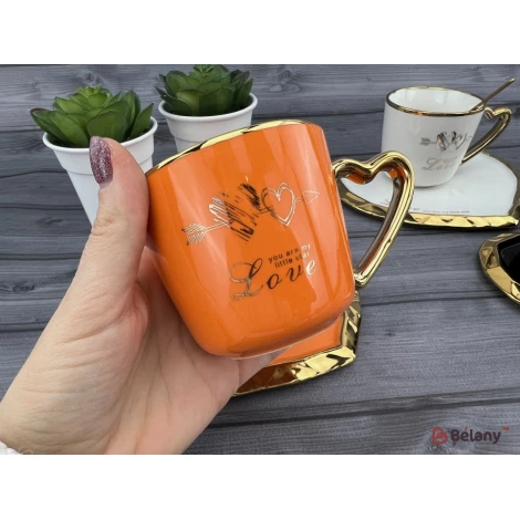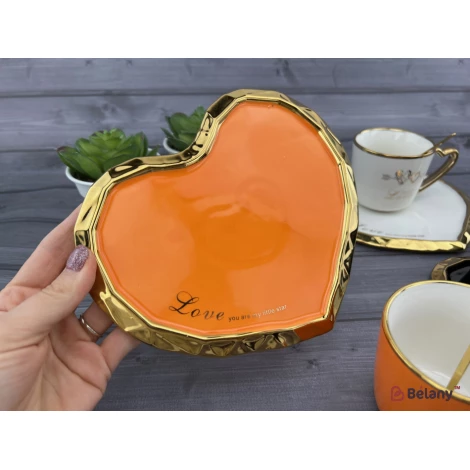 Керамічна чашка з блюдцем "Deep Gold heart" оранж