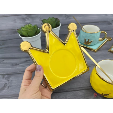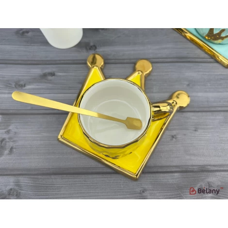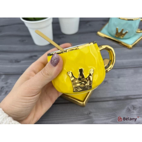 Керамічна чашка з блюдцем "Gold crown" оранж