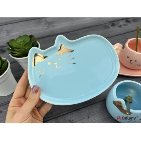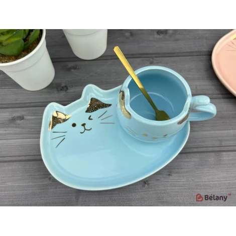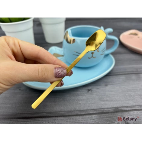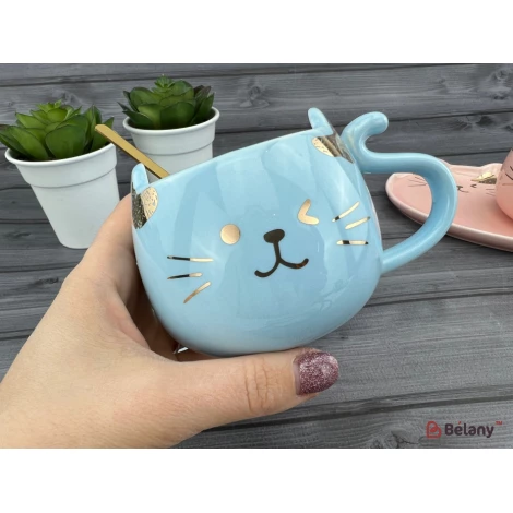 Керамічна чашка із блюдцем "Gold Ears" блакитна