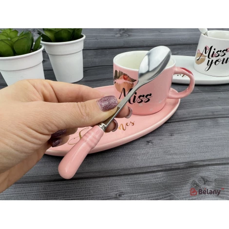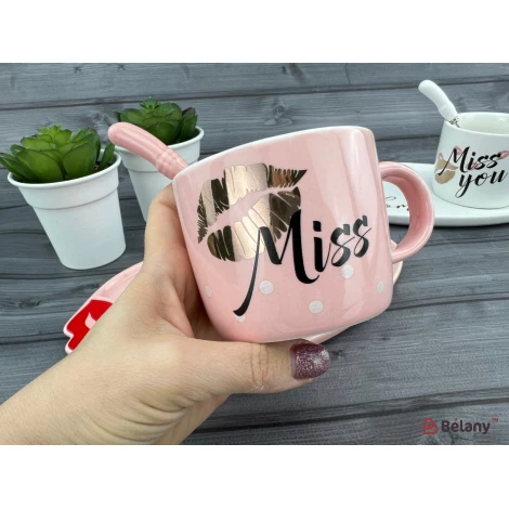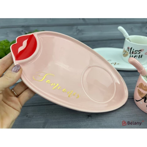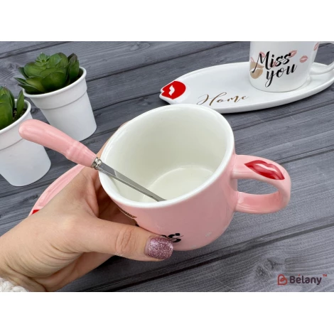 Керамічна чашка з блюдцем "Kiss me" рожева